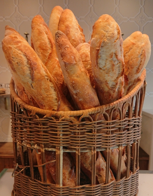 バゲット的なものがバスケットに無造作に突っ込んでありますが、